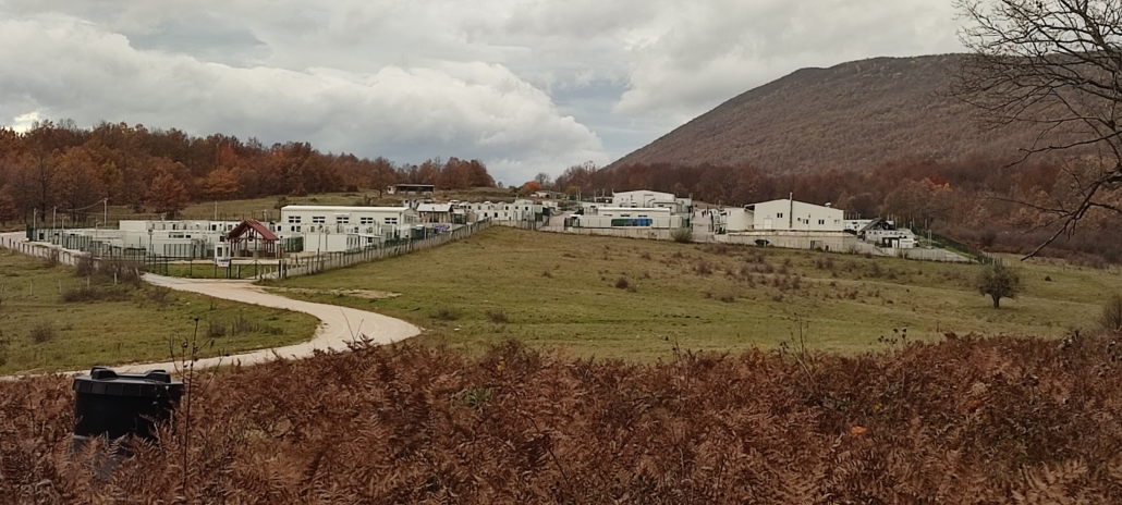 Al campo di Lipa, in pieno Parco nazionale, in mezzo a splendidi paesaggi a qualche chilometro da Bihać, nel Cantone Una-Sana, centinaia di migranti vennero stipati (era il 2020) in modo tale che da alcuni osservatori esterni quel campo venne definito: “al di sotto di ogni standard umano e umanitario minimo”. Oggi le condizioni sono migliorate, al posto delle tende ci sono dei container, con bagni chimici e stradine che collegano le abitazioni temporanee. Ma i giorni sono tutti uguali qui. Intorno, la natura. Ma non si può uscire. Gli ingressi al campo sono vietati, così le riprese, le foto.
