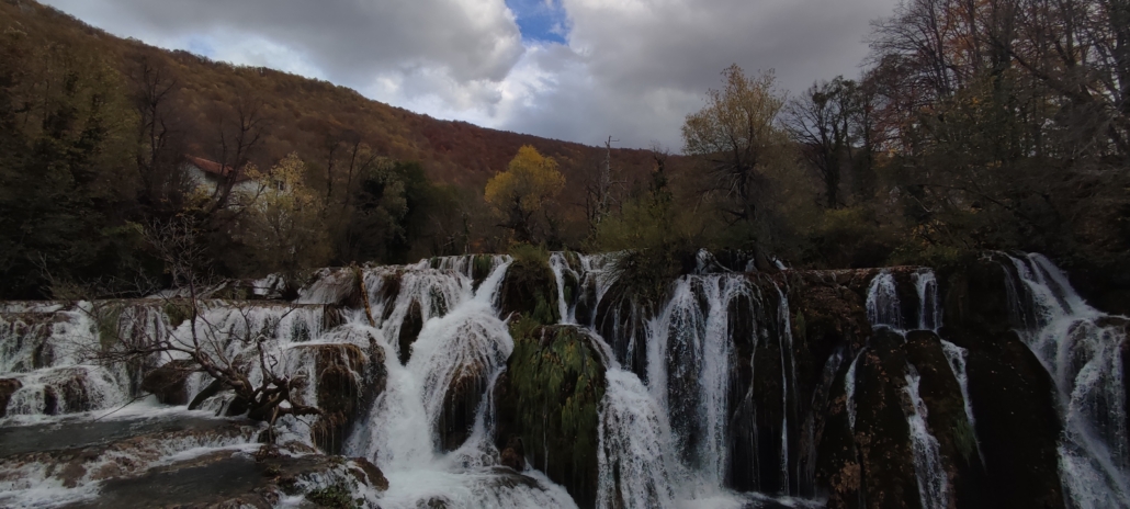 Solo che la Natura è una. Te ne accorgi in Bosnia quando transiti nei sentieri del Parco Nazionale del fiume Una. Le cascate che a fine ottobre hanno poca acqua. Non fa freddo, alcuni giovani in città sono ancora in maniche corte. Sui sentieri del parco le foglie iniziano già a cadere, i boschi mutano al cospetto del cambio delle stagioni e l’autunno alle porte trasforma le chiome dei faggi, dei larici, degli abeti.