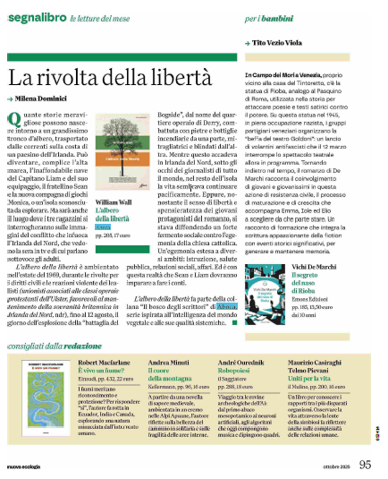 L’albero della libertà è ambientato nell’estate de11969, durante le rivolte per i diritti civili e le reazioni violente dei lealisti (unionisti associati alle classi operaie protestanti dell’Ulster, favorevoli al mantenimento della sovranità britannica in Irlanda del Nord, ndr), fino al 12 agosto il giorno dell’esplosione della “battaglia del consigliati dalla redazione William Wall L’albero della libertà Aboca pp. 205, 17 euro Bogside”, dal nome del quartiere operaio di Derry, combattuta con pietre e bottiglie incendiarie da una parte, mitragliatrici e blindati dall’altra.