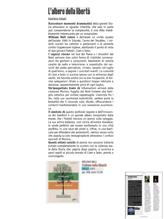 “L’albero della libertà”, edito nel catalogo di Aboca Edizioni, è l’ultimo romanzo di William Wall; ambientato nell’estate del 1969, quando i Troubles iniziano a farsi sentire, il libro intreccia memoria personale, storia collettiva e coscienza ambientale. Abbiamo incontrato l’autore in occasione di Pordenonelegge per parlare insieme a lui delle sue pagine, del potere delle radici, del legame personale fra Irlanda e Italia e di molto altro ancora.