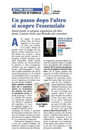 Se avete la possibilità di attendere l’arrivo dell’autunno organizzando qualche camminata, l’ultimo libro di Franco Faggiani, Verso la libertà con un bagaglio leggero, pubblicato da Aboca, si rivelerà una lettura piacevolissima, densa di significati e suggestioni.